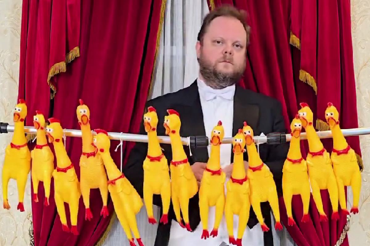 В сети завирусились два видео, снятые бразильским пианистом и блогером Фабрисиу Андре Бернардом ди Паулу (Лордом Виньетейру). Музыкант сыграл «Bohemian Rhapsody» Queen на игрушечных курах для животных.
